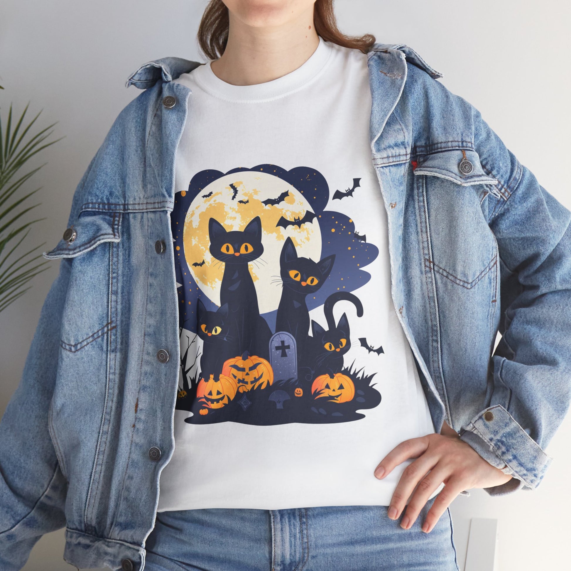 Spooky Cat Halloween Tee, Unisex Cotton T-Shirt, Cats, Halloween Gift
