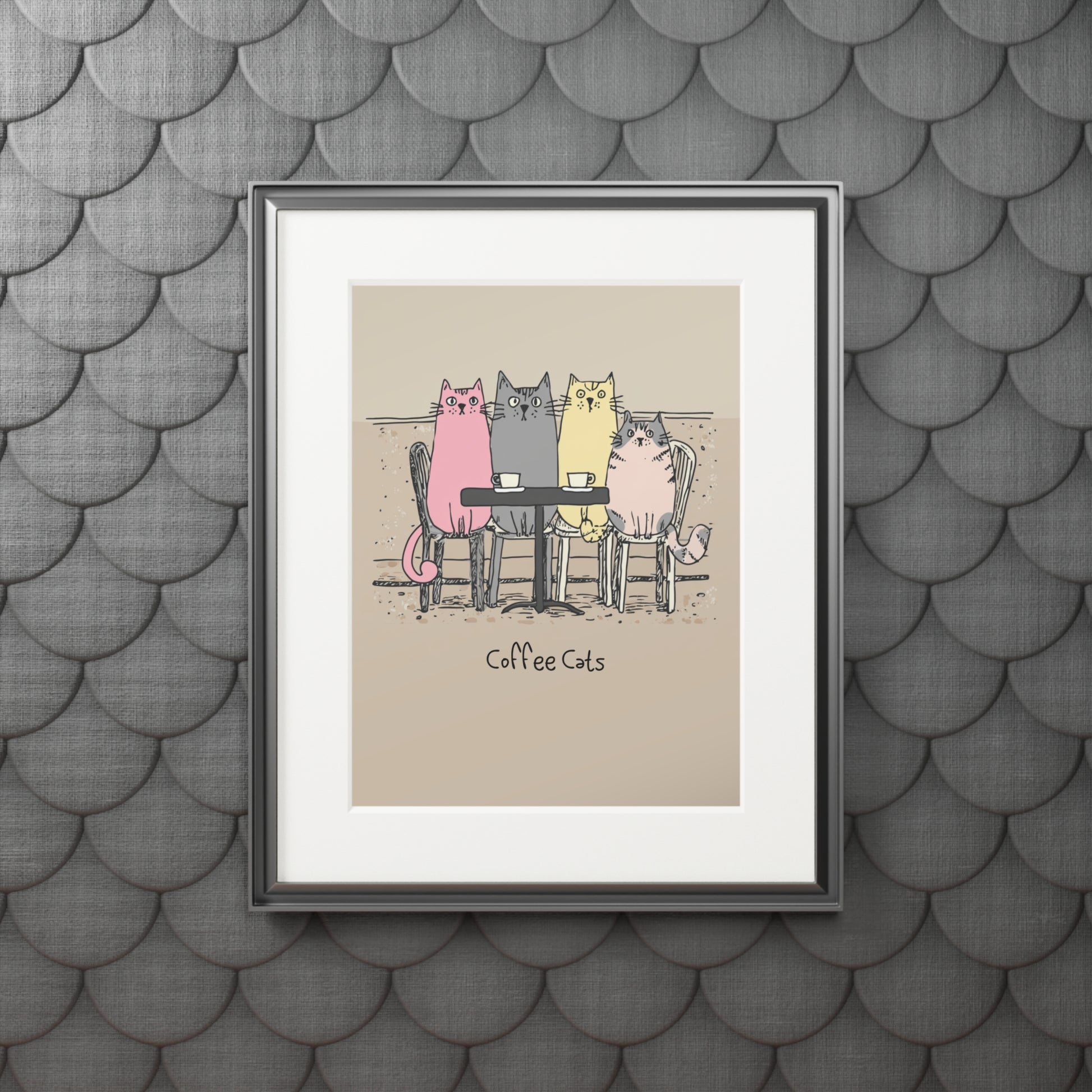 Brighten up your home or office with this adorable “Coffee Cats” framed poster. Featuring four colorful cats enjoying coffee together, this playful artwork combines humor and coziness. Printed on high-quality paper with a stylish frame, it’s a perfect wall décor piece for cat lovers, coffee fans, or anyone who enjoys fun and unique art. Ideal as a gift or a personal touch for your living space.