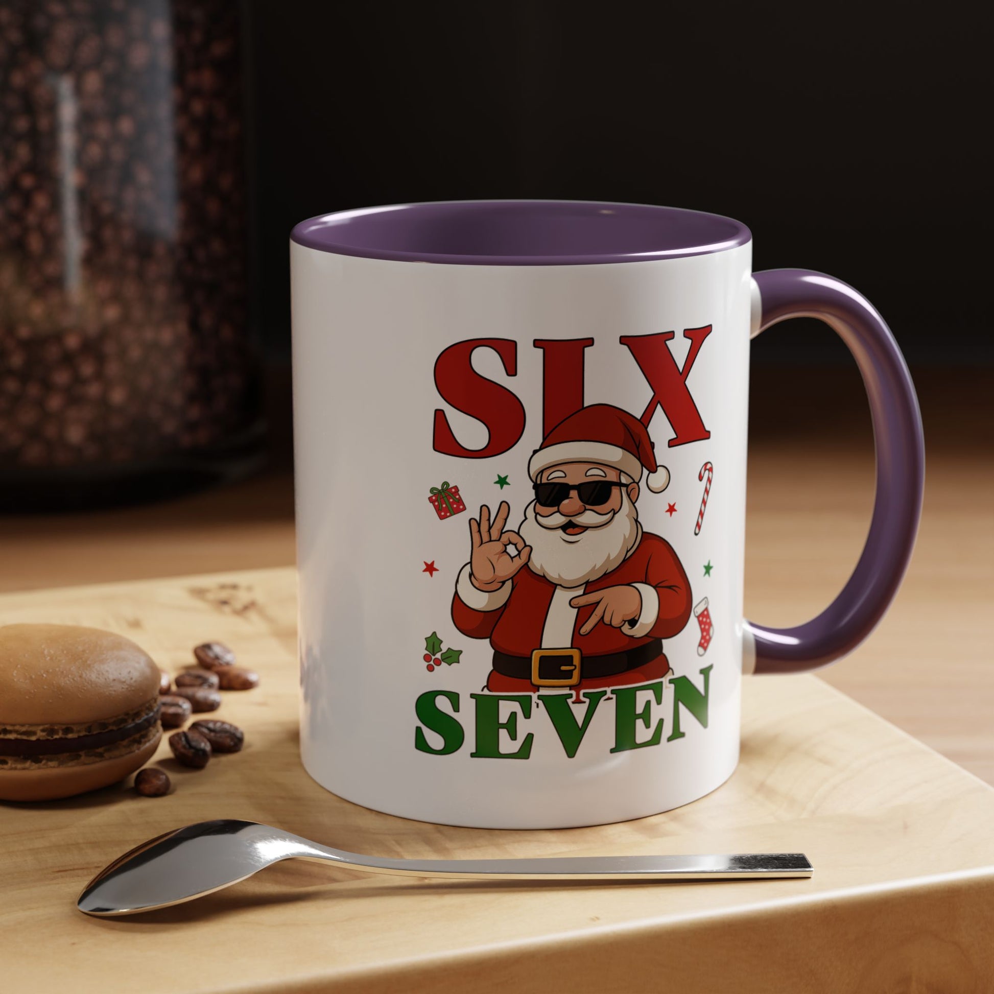Accent Coffee Mug — 'SLX SEVEN' Cool Santa Christmas Mug (11/15oz)