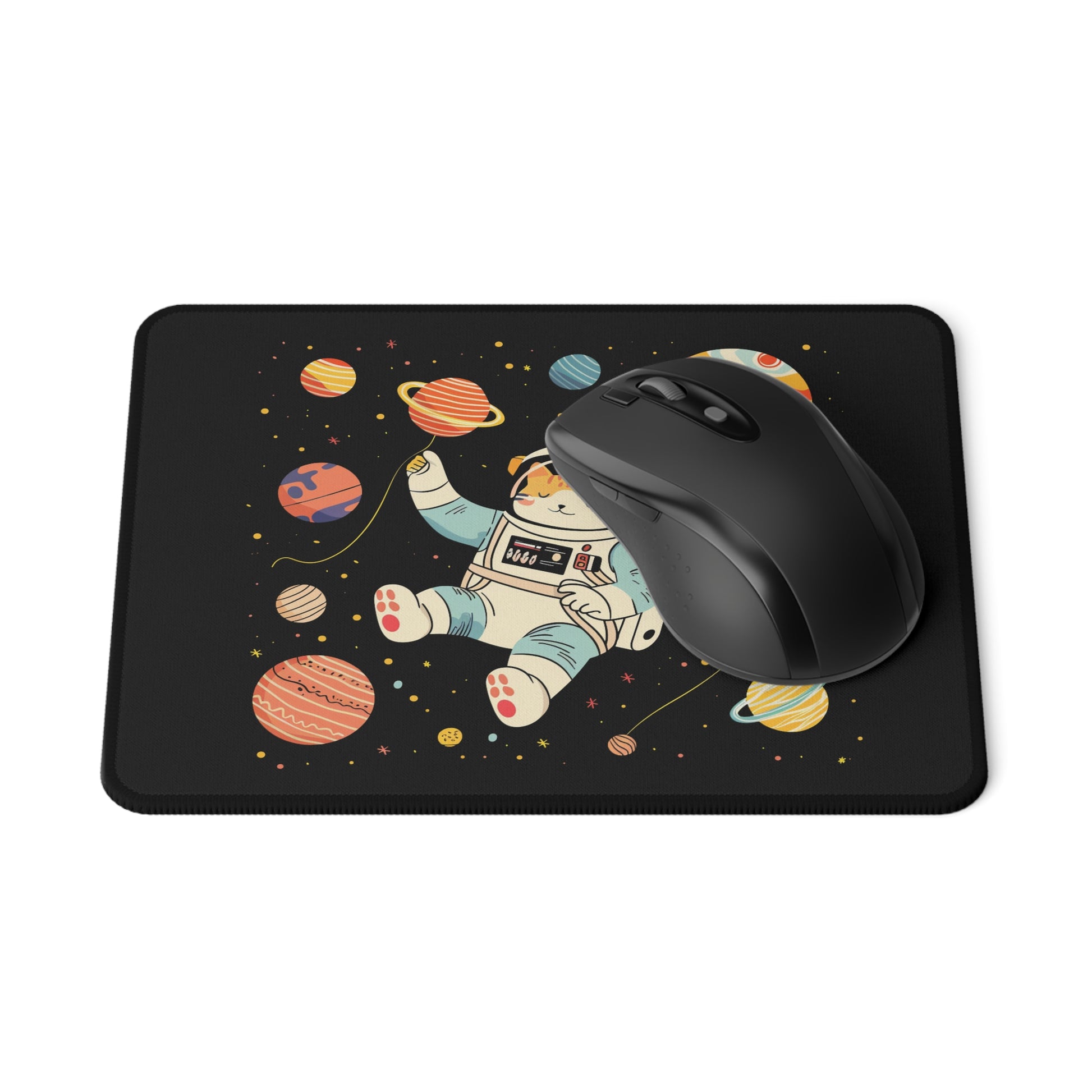 Drift into calm focus with a mouse pad that feels like a tiny orbit of its own. A chubby astronaut-cat floats among warm-toned planets on a deep black field, bringing a playful, cozy energy to long gaming sessions or late-night work sprints. The low-friction surface lets your mouse glide smoothly while the grippy rubber base keeps the pad steady during quick flicks. Colors stay vivid over time, and the stitched edges resist fraying so this little cosmos stays neat through daily use. It slips easily into a packed desk setup, ready to brighten a streaming corner or a study nook.