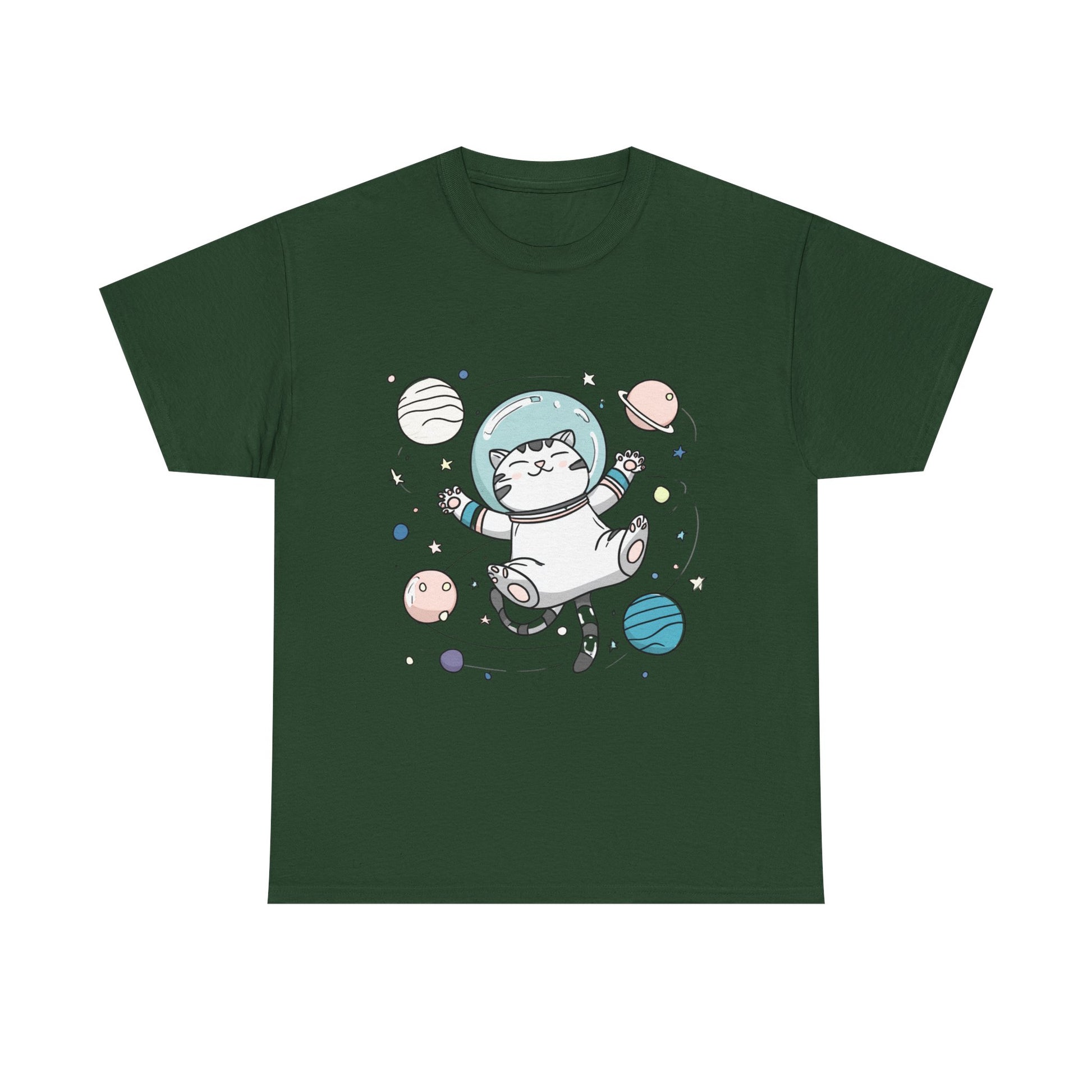 Take your style out of this world with our Astronaut Cat T-Shirt! Featuring an adorable cartoon cat floating happily among planets and stars, this fun design is perfect for cat lovers, space fans, and anyone who loves playful graphic tees.