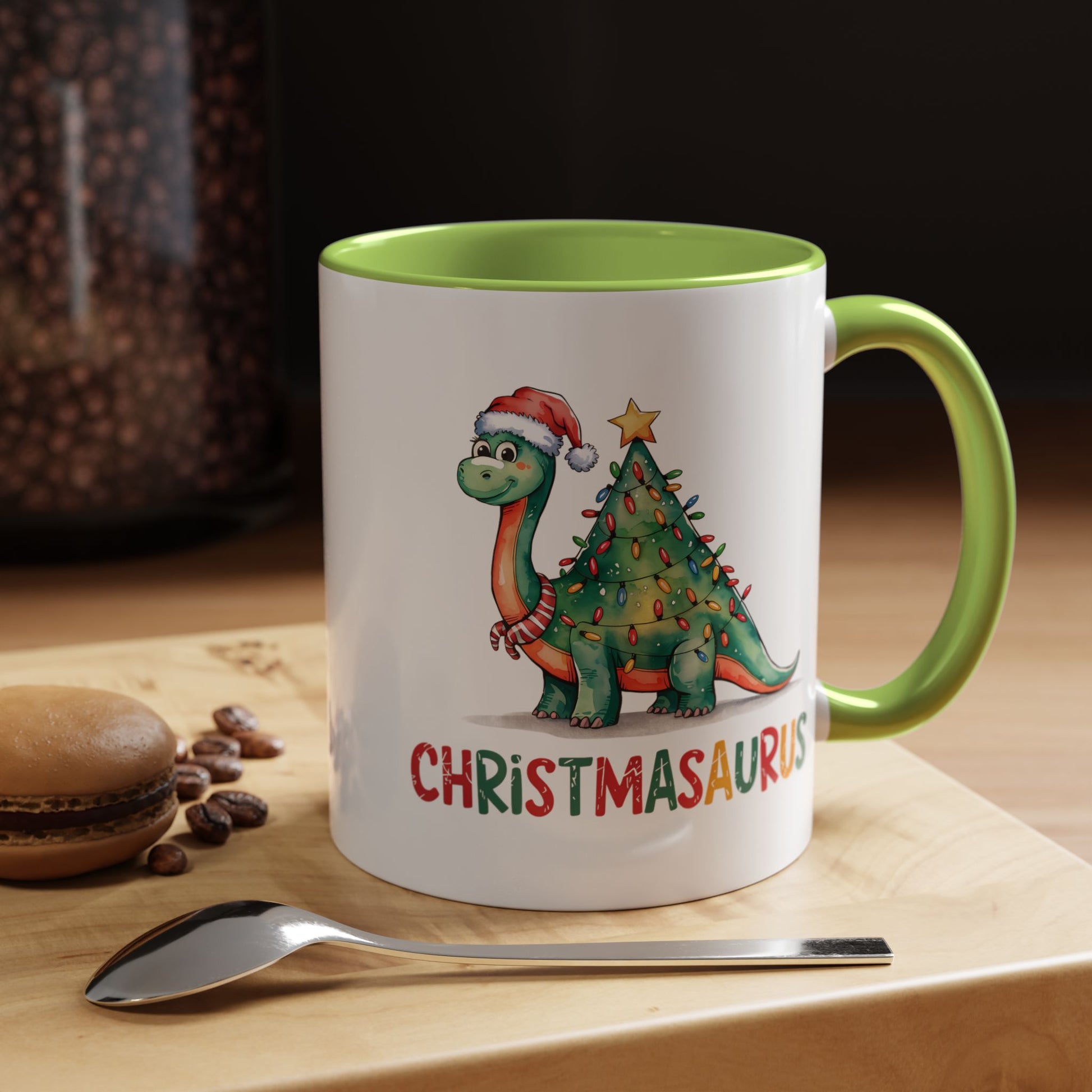 Christmasaurus Accent Coffee Mug — Festive Dino Holiday Coffee Cup (11/15oz)
