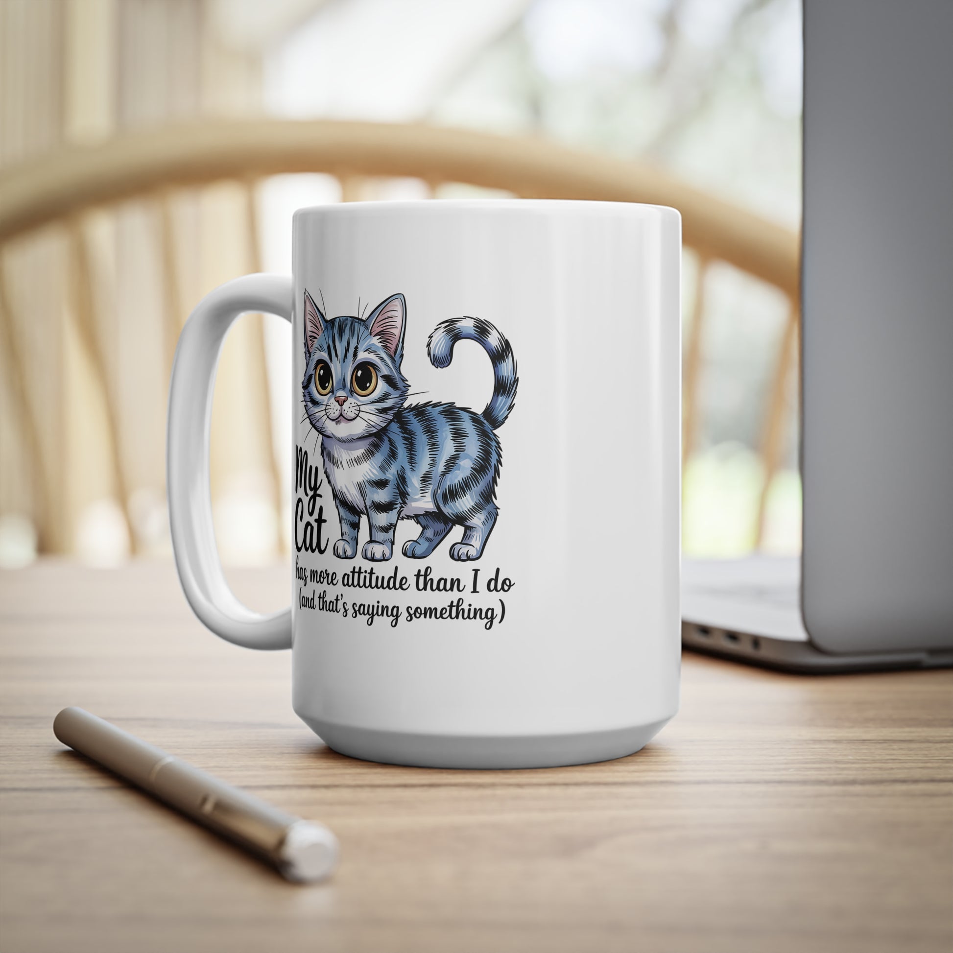 This adorable ceramic mug features a cute kitten illustration with the quote My Cat Has More Attitude Than I Do. Perfect for cat lovers who enjoy humorous and sassy pet themed designs, this mug makes a fun everyday coffee companion and a thoughtful gift for birthdays, holidays, or anyone who appreciates the bold personality of cats.