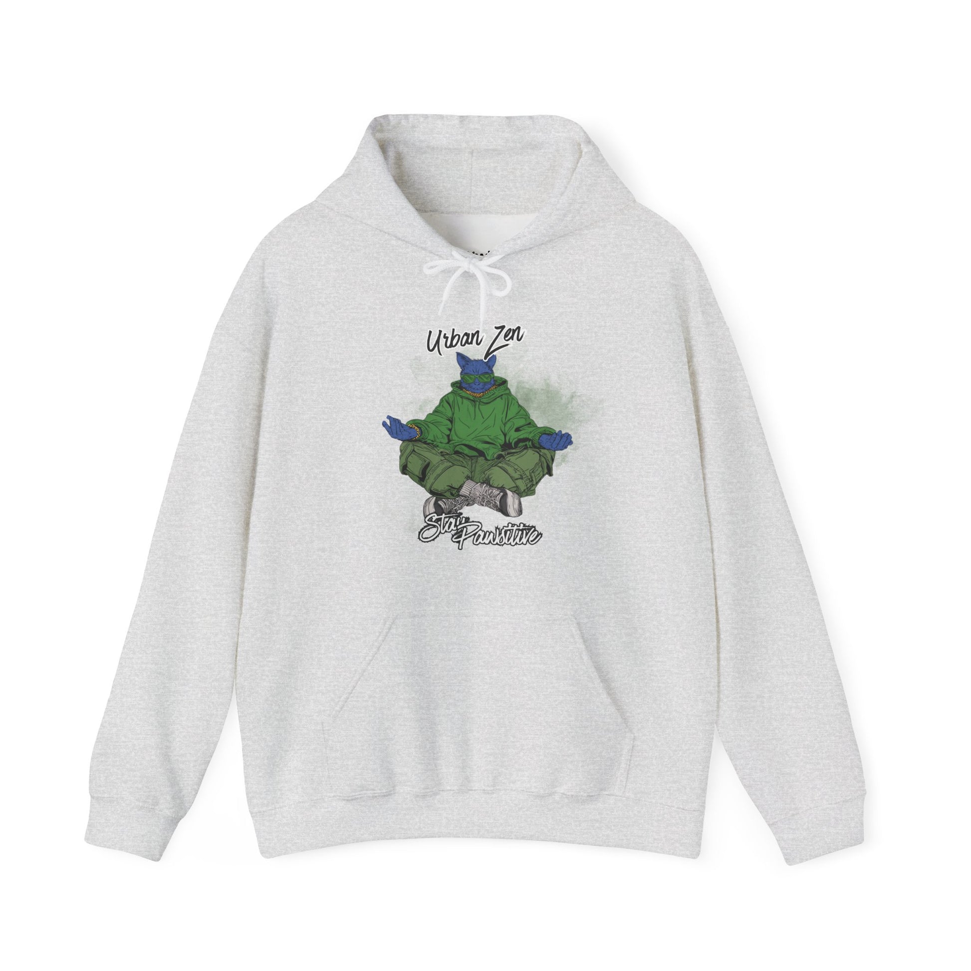 This unisex hoodie showcases a meditating cat in streetwear style with the quote “Urban Zen – Stay Pawsitive.” Combining calm energy with modern attitude, it’s the perfect blend of mindfulness and city cool for cat lovers and laid-back fashion fans.
